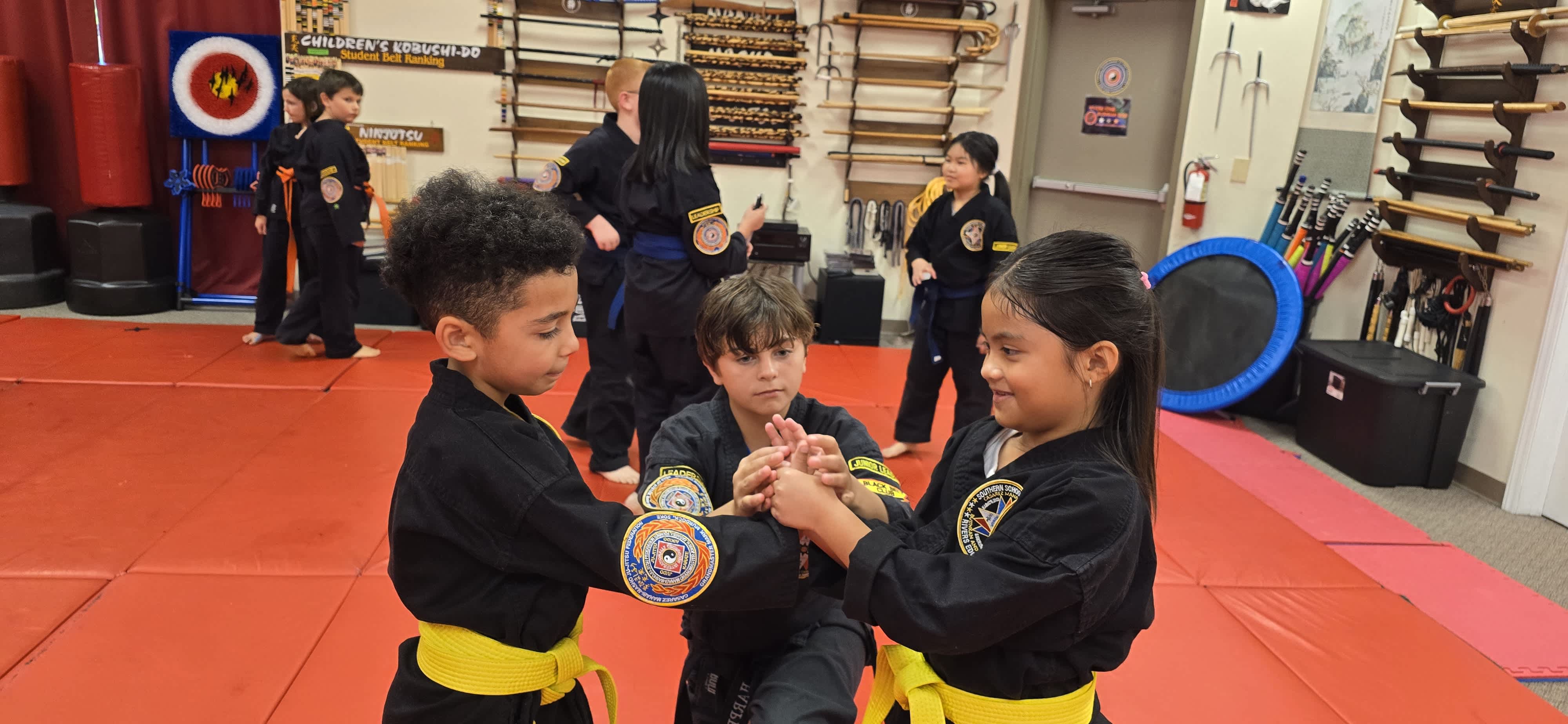 Preschool ages 3 to 6. This is a fun class for young children. It builds their hand and eye coordination, develops more precise motor skills and balance. It also prepares them for the Kobushi-Do class ages 7 to 14. They learn basic punches, kicks and grab escapes while gaining self confidence and the ability to train and get along with others their age.