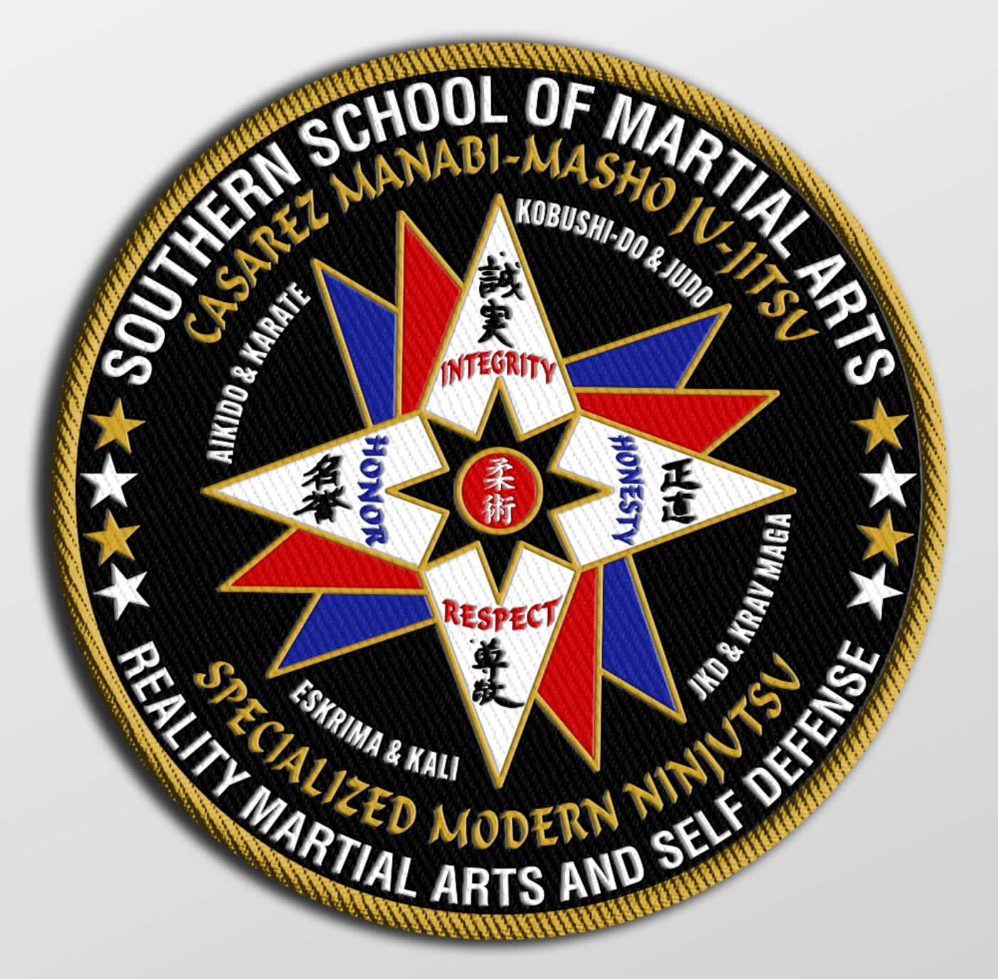 At Southern School of Martial Arts and at the other Casarez Manabi-Masho Ju-Jitsu Federation dojos in KY. WV. and OH. teach Casarez Manabi-Masho Ju-Jitsu which is a real world approach to Martial Arts and Self Defense. There are no competitions or tournaments. We teach a very practical, dynamic and effective blend of martial arts, which include: Modernized Classic Japanese Ju-Jitsu (our base art) with a blend of Ninjutsu, Judo, Short Circle Aikido (a more combative form of Aikido), Karate, Eskrima and Kali. We also teach a mixed striking art called KoGeki Manabi-Masho-Ryu which is a mix of several techniques from Karate, JKD, Krav Maga, Muay Thai, Kick Boxing and a few select Silat techniques. We have a lot of training equipment at the dojo. You only need to buy any personalized protective equipment like mouth pices or groin protectors. We will have two adult/teen and two children’s sparring sets available at the dojo. You can buy your own personalized size of sparring equipment from Amazon at great prices if you want to bring your own. Our students learn from a high ranking Grandmaster, 10th degree black belt with many years of experience. The Grandmaster is also the “Soke,” which means the head of the system. This means you get the Grandmaster, head of the system and the top instructor of the art teaching you all the material. At the Southern School of Martial Arts, you get the best of the best! On May 16, 2025 Southern School of Martial Arts will celebrated its 29th year in business in Johnston County, NC.